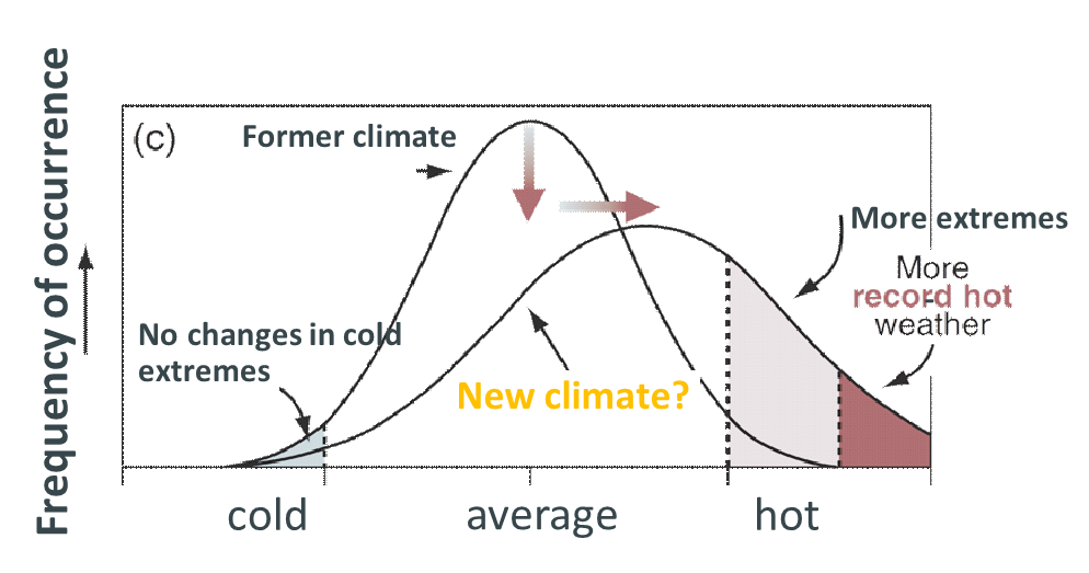 Future warming depends on future GHG emissions, with cumulative net CO2 dominating. The assessed best estimates and very likely ranges of warming for 2081-2100 with respect to 1850–1900 vary from 1.4 [1.0 to 1.8] °C in the very low GHG emissions scenario (SSP1-1.9) to 2.7 [2.1 to 3.5] °C in the intermediate GHG emissions scenario (SSP2-4.5) and 4.4 [3.3 to 5.7] °C in the very high GHG emissions scenario (SSP5-8.5). Projected global GHG emissions from NDCs (Nationally Determined Contributions) announced prior to COP26 would make it likely that warming will exceed 1.5°C and also make it harder after 2030 to limit warming to below 2°C (IPCC, 2021). Continued GHG emissions will further affect all major climate system components, and many changes will be irreversible on centennial to millennial time scales. Many changes in the climate system become larger in direct relation to increasing global warming. Continued global warming is projected to further intensify the global water cycle, and very wet and very dry weather and climate events and seasons (e.g., Mann et al., 2017; Lorenz et al., 2019; Felsche et al., 2024). So which type of climate will we get in the future in Central Europe? Probably not just a shift to a warmer climate such as from temperate oceanic or subcontinental to subtropical Mediterranean, but a climate where still severe (late) frosts are occurring but with higher mean and extreme temperatures, therefore causing a higher demand for evapotranspiration (see Figure 26-1, IPCC, 2001). The climatic water balance, especially in the vegetation period, will fall below zero in many regions in Europe. Days with extreme temperatures (e.g., 30° C) will rise in number.