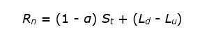 The energy for evaporation, heating and photosynthesis is provided by the net balance of short-wave and long-wave radiation. This net radiation (Rn) can thus be written as follows: